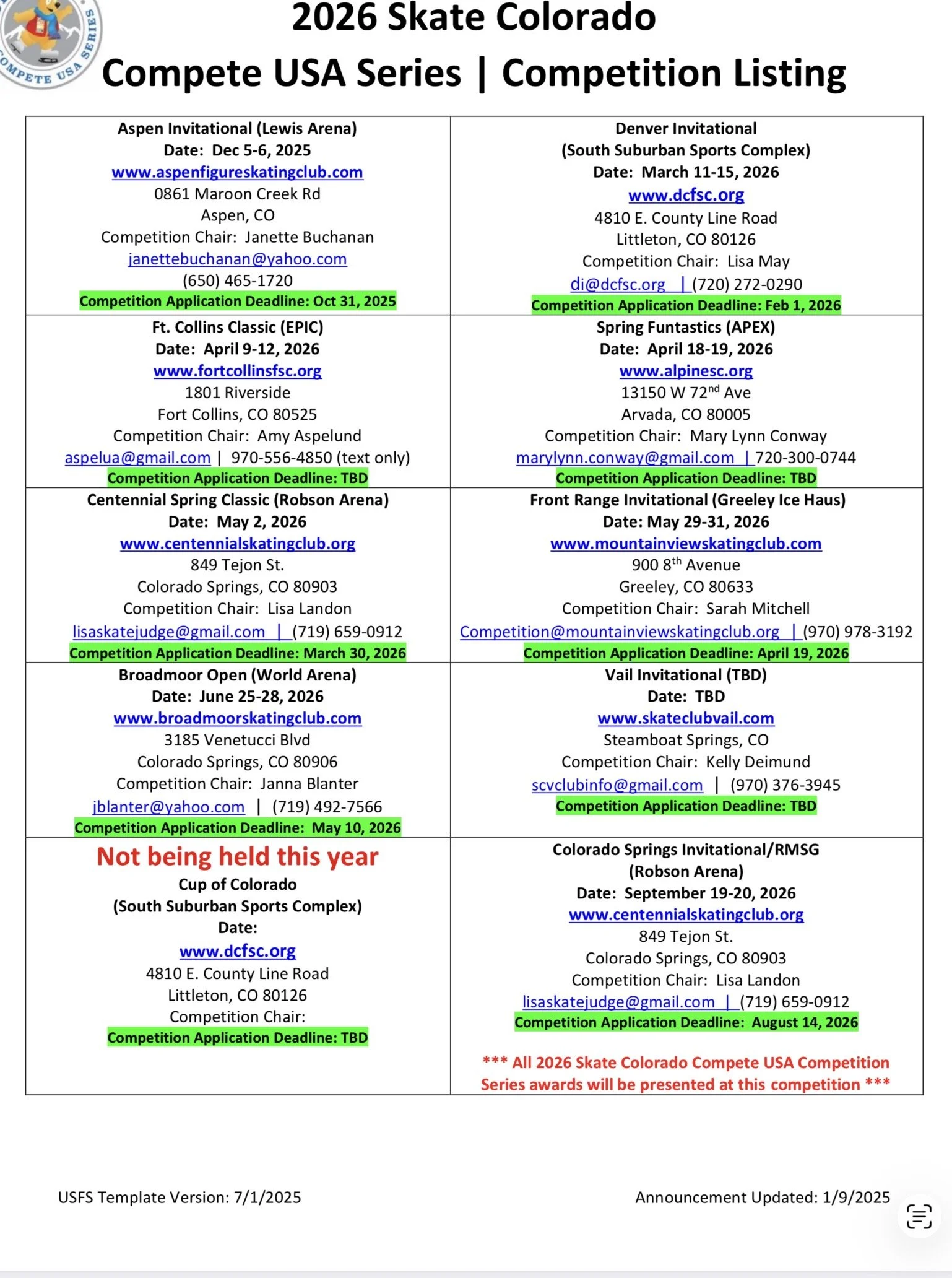 Apex, SSSC, Fort Collins, Monument, Broadmoor, SSSC, Florida, Monument